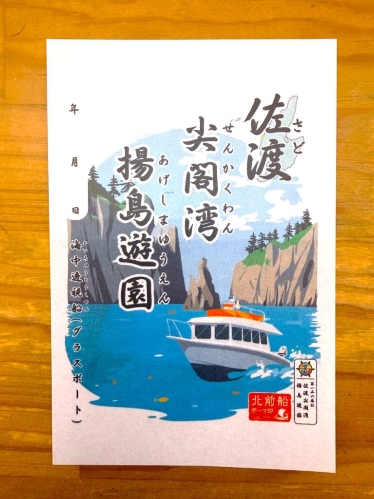 尖閣湾の岩肌と海中透視船をデザインし、また、佐渡は北前船の寄港地であったことから北前船のテーマ印を刻印した希少性が高いものとなっております。